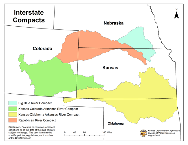 Kansas and Oklahoma entered the Arkansas River Compact in 1965. The purpose of the compact is to promote interstate comity, to equitably divide and promote the orderly development of the waters of the Lower Arkansas River Basin, to provide an agency for administering the waters of the basin, and to encourage an active pollution abatement program in each state.