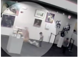 A video showed the child wrapping his arms around the piece and then struggling to hold it up as it fell to the floor.