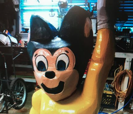 Christopher Gulick says someone managed to steal a 200-pound, brightly colored log sculpture of Mighty Mouse from his backyard Tuesday night. The sculpture, which was a gift from another artist, is about 5 feet tall and painted bright yellow, blue, red and black.