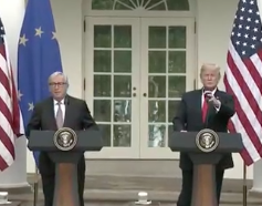 Juncker said he had an “intention to make a deal today and we made a deal today. We have identified a number of areas on which to work together, work towards zero tariffs on industrial goods. That was my main intention, for those to come down to zero tariffs on industrial goods.”