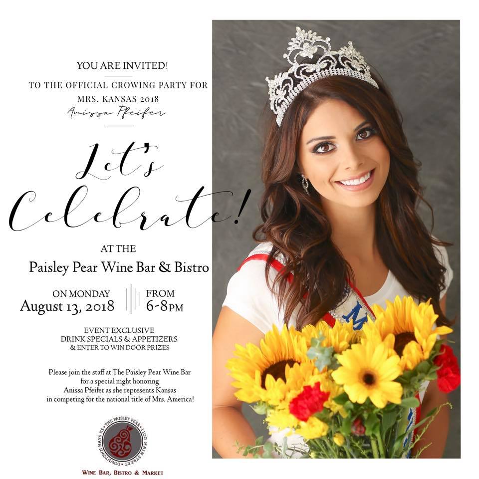 Crowning party Monday for 2018 Mrs. Kansas Annissa Pfeifer