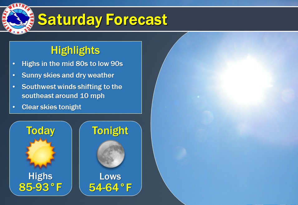 Sunny, with a high near 90. Light and variable wind becoming southeast 5 to 10 mph in the morning.