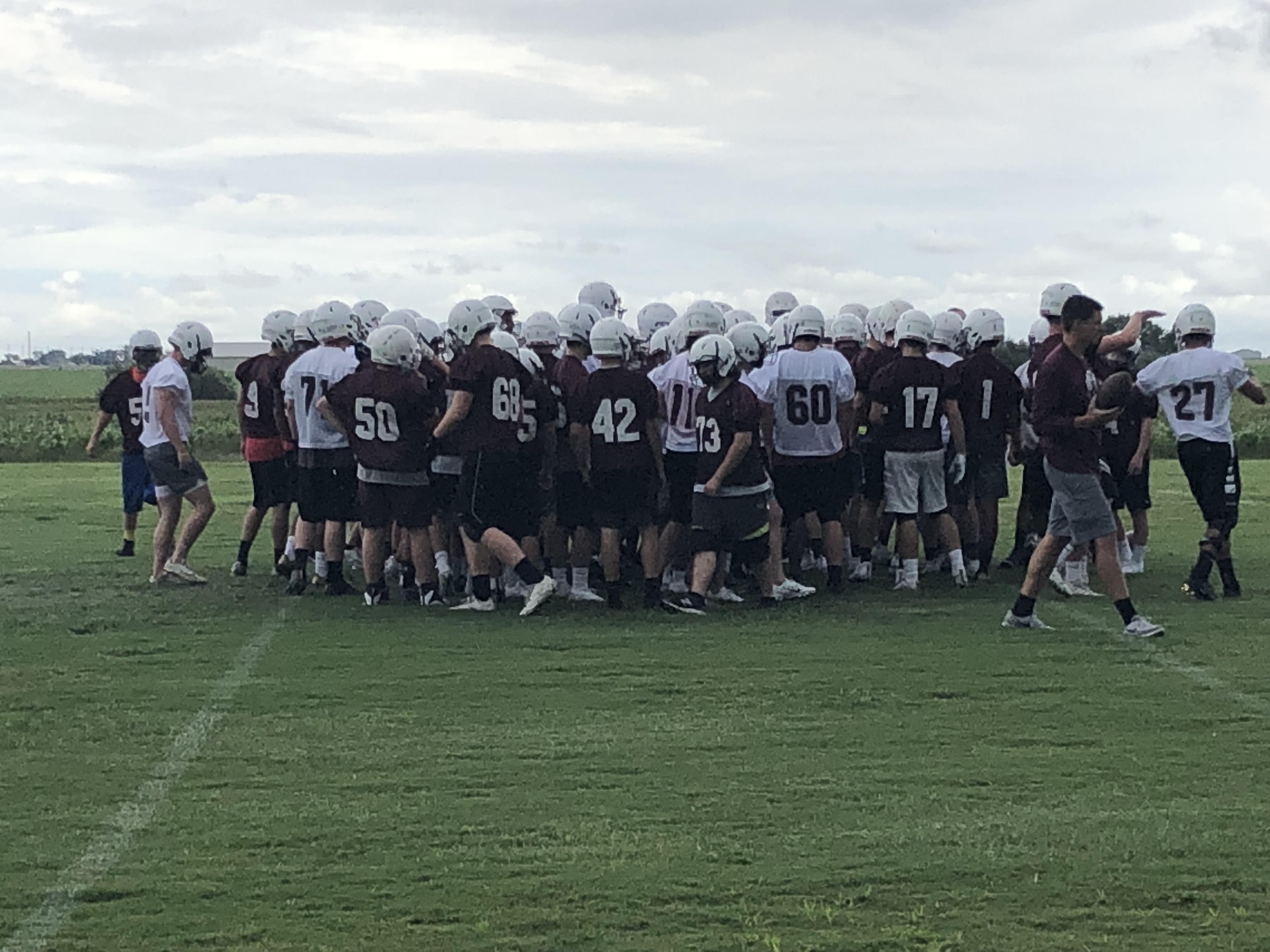 Crough says the goal in this first week is to figure out who will play where within the schemes he has brought to the program. The position the players are at over the first few days of practice may not be where they continue to play as the preseason moves along. Crough is also in charge of the offense. Former Fort Hays State football player Layton Hickel is the defensive coordinator. Overall the program features ten coaches to help the team.