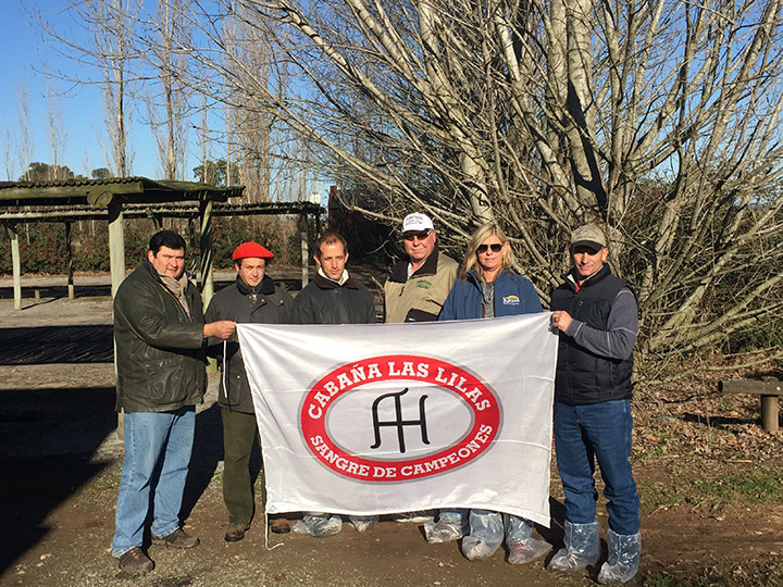 Representatives from the Kansas beef industry were part of a beef genetics trade mission to Argentina in July. Pictured (from left): Fernando Cristani and Tomás Giacomantone with Las Lilas in Argentina, translator Hendrik Jordaan, Lynn Ferguson of Ferguson Angus, Shirley Acedo with KDA, and Craig Iwanski DVM of Central Veterinary Services and JC Ranch LLC.