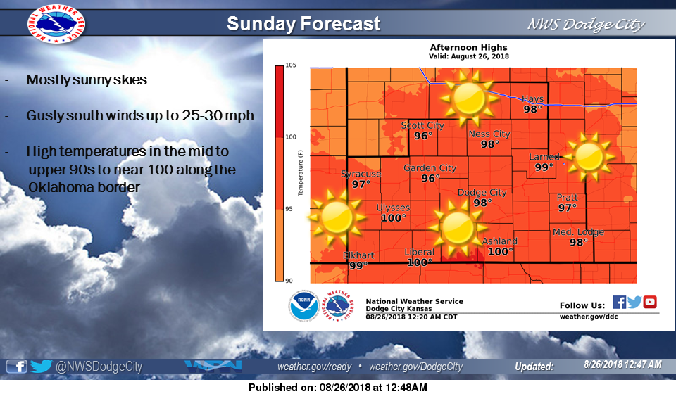 Sunny, with a high near 98. South southwest wind 15 to 18 mph, with gusts as high as 29 mph.