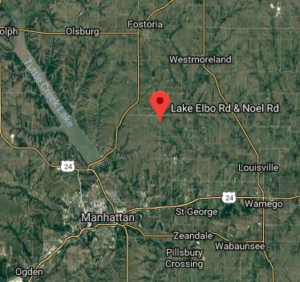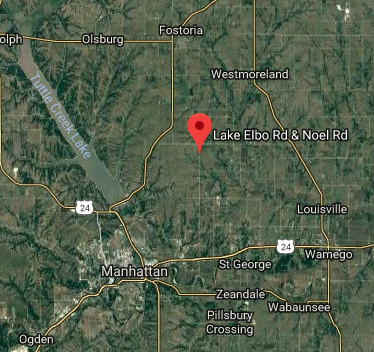 The Kansas Highway Patrol reported a 1976 Beech Bonanza piloted by Jensen, Drew J. Jensen, Lincoln, Neb., said he was trying to switch fuel tanks and the lever broke halfway between both fuel selector settings causing a starvation of fuel. The pilot made an emergency landing in a grass meadow near just west of Lake Elbo and Noel Road, approximately 12 miles east of Manhattan.