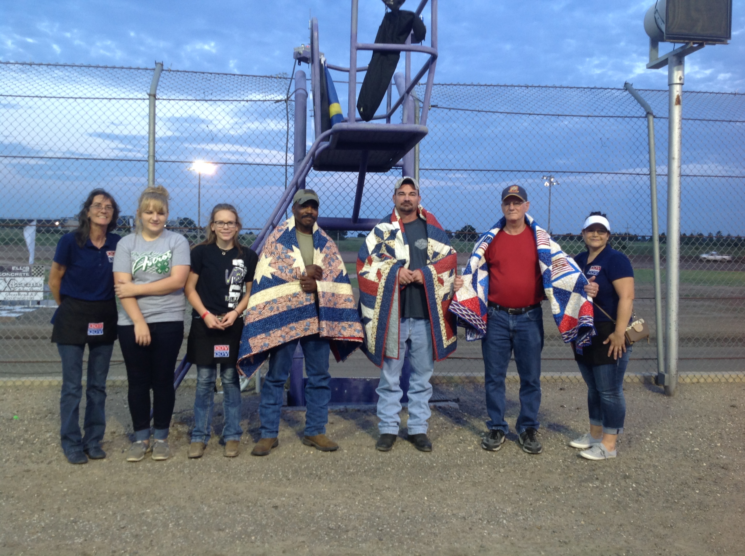 Four servicemen were honored by Quilts of Valor during the RPM Speedway races on Saturday. Quilts of Valor makes quilts for both veterans and active service personnel who have been affected by war. Those men who received quilts were Kern, David “Spud” Richardson, Jim Dinkel and Stan Dreiling. Dreiling was not able to attend the ceremony Saturday.
