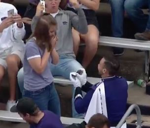 MANHATTAN, Kan. (AP) — Kansas State University’s football team may have lost the game Saturday, but fans at the stadium still erupted in cheers as one of the school’s drum majors proposed to a graduate student during halftime.
