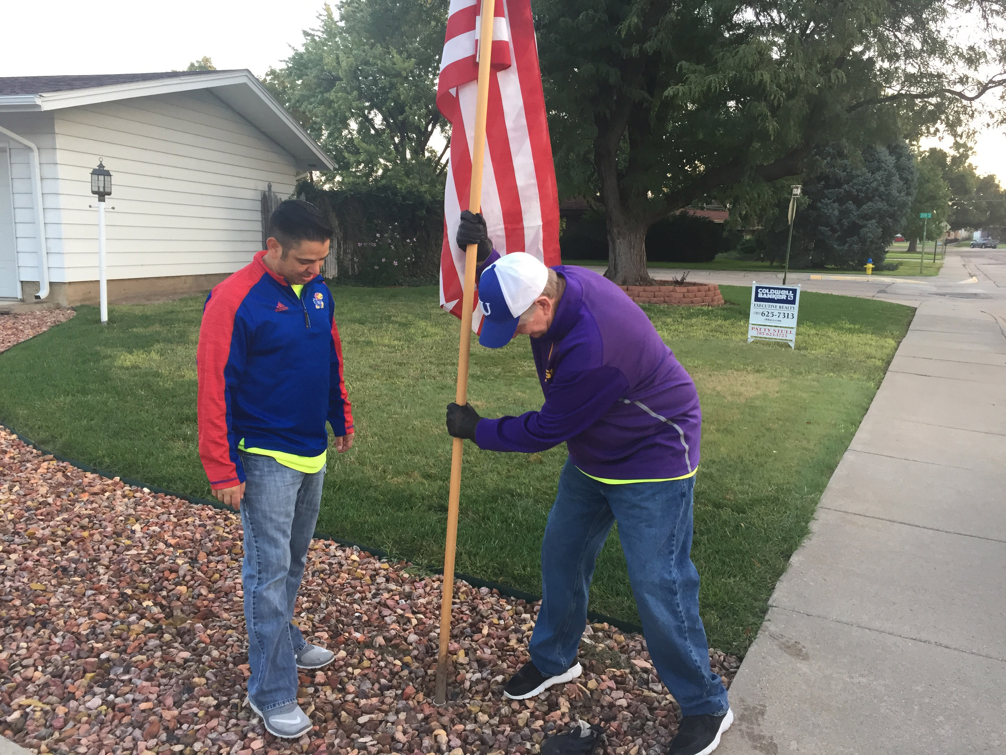 They made 49 stops, placing the flags in front of homes and businesses in northwest Hays which are participating in the Kiwanis Flag Project fundraiser.