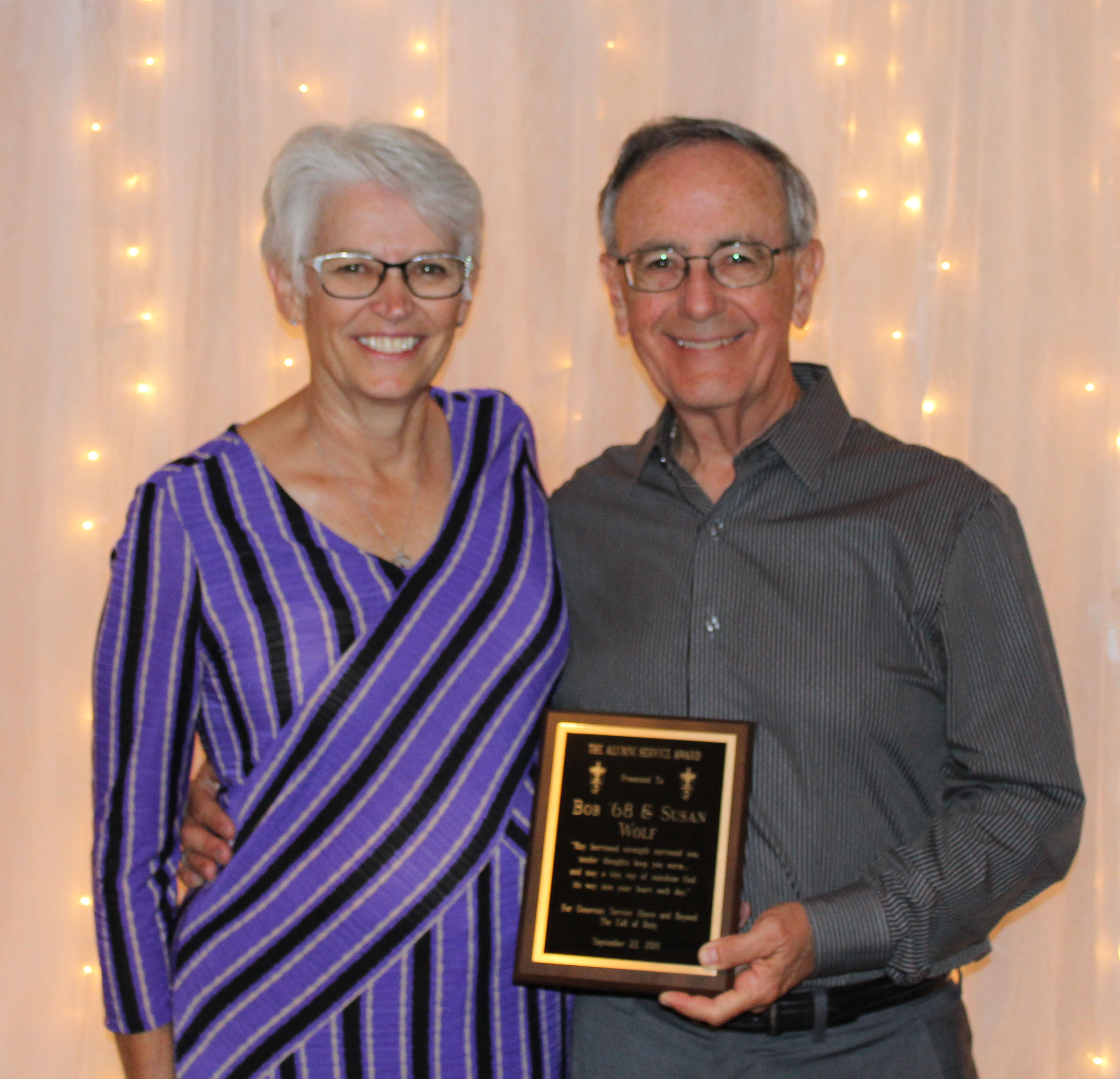 This year’s Distinguished Alumni Award recipients are Bob ’68 & Susan Wolf. The Distinguished Alumni Award is an award given by the Alumni Association of Thomas More Prep-Marian for alumni and their spouses that give generously of their time, talents and treasure to the Alumni Association, Endowment Foundation and Thomas More Prep-Marian. The Alumni Board votes on the nominees and chooses the winner(s). This award presentation is always done at the Homecoming banquet and the recipients are not informed prior to the announcement at the banquet. We love to surprise these individuals in front of their classmates and fellow alums.