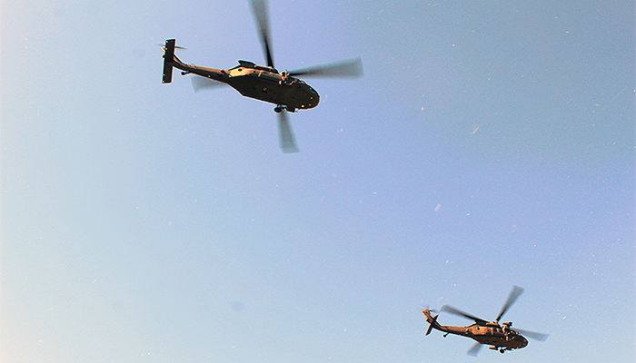 The Blackhawks move people, parts and equipment. The helicopters can also be outfitted with armaments for aerial assault missions during which they drop soldiers in hostile areas and then pick them up from missions.