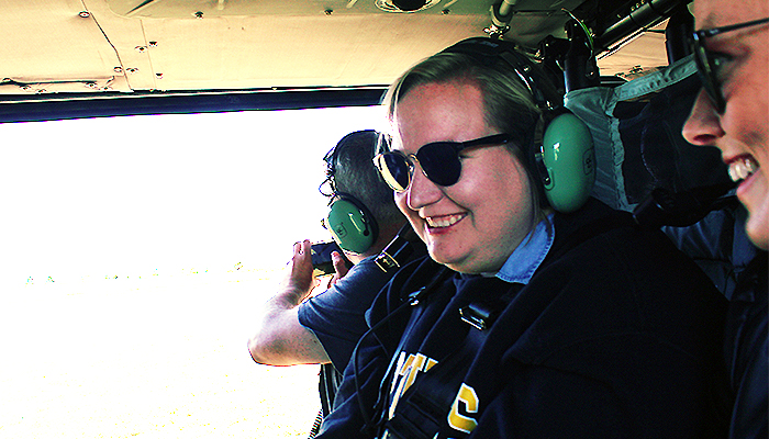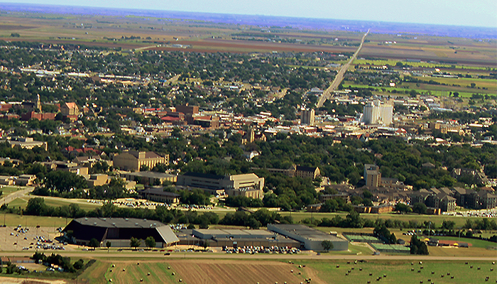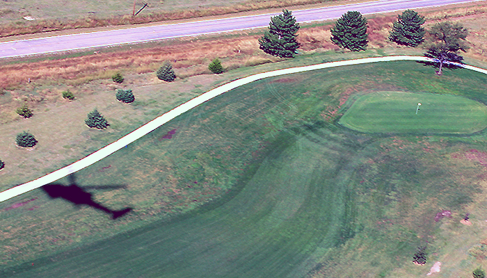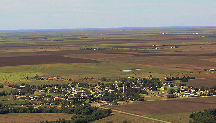 The ground slowly diminished under their feet, and Hays became a landscape of toy trucks and round bales the size of marshmallows — a familiar landscape from a very unfamiliar perspective.