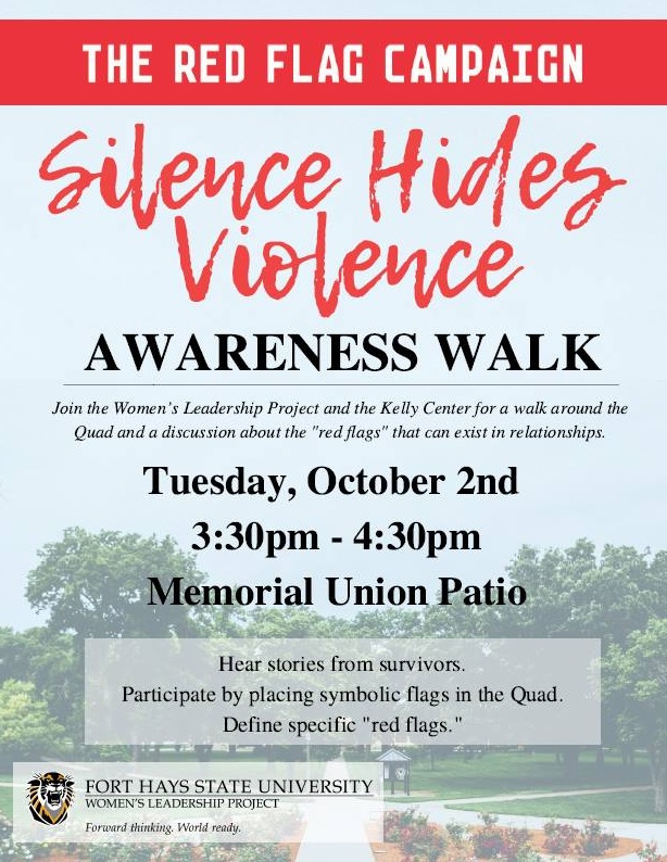 The WLP will kick off the month with the Silence Hides Violence Awareness Walk on Oct. 2nd from 3:30 p.m. to 4:30 p.m. on the FHSU campus.