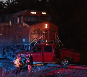 A pickup driven by Natalia Reyneros, 38, Wichita, was traveling at 63rd Street west and Kansas 15 near Derby when it smashed through the railroad crossing arms and into the path of a train, according to Lt. Tim Myers of the Sedgwick County Sheriff’s Department.