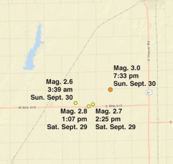 HARPER COUNTY — Another earthquake shook Kansas early Wednesday. The quake at 2:36 a.m. measured a magnitude 3.5 and was centered approximately 5 miles northeast of Harper, according to the U.S. Geological Survey.