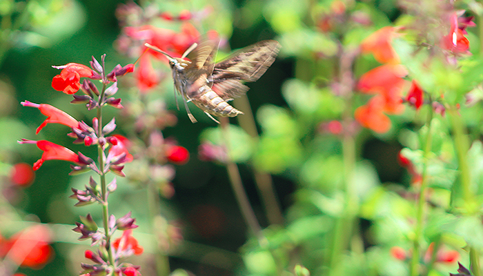 A hummingbird moth takes advantage of the last sips of summer nectar in Pam Herl’s garden in WaKeeney.