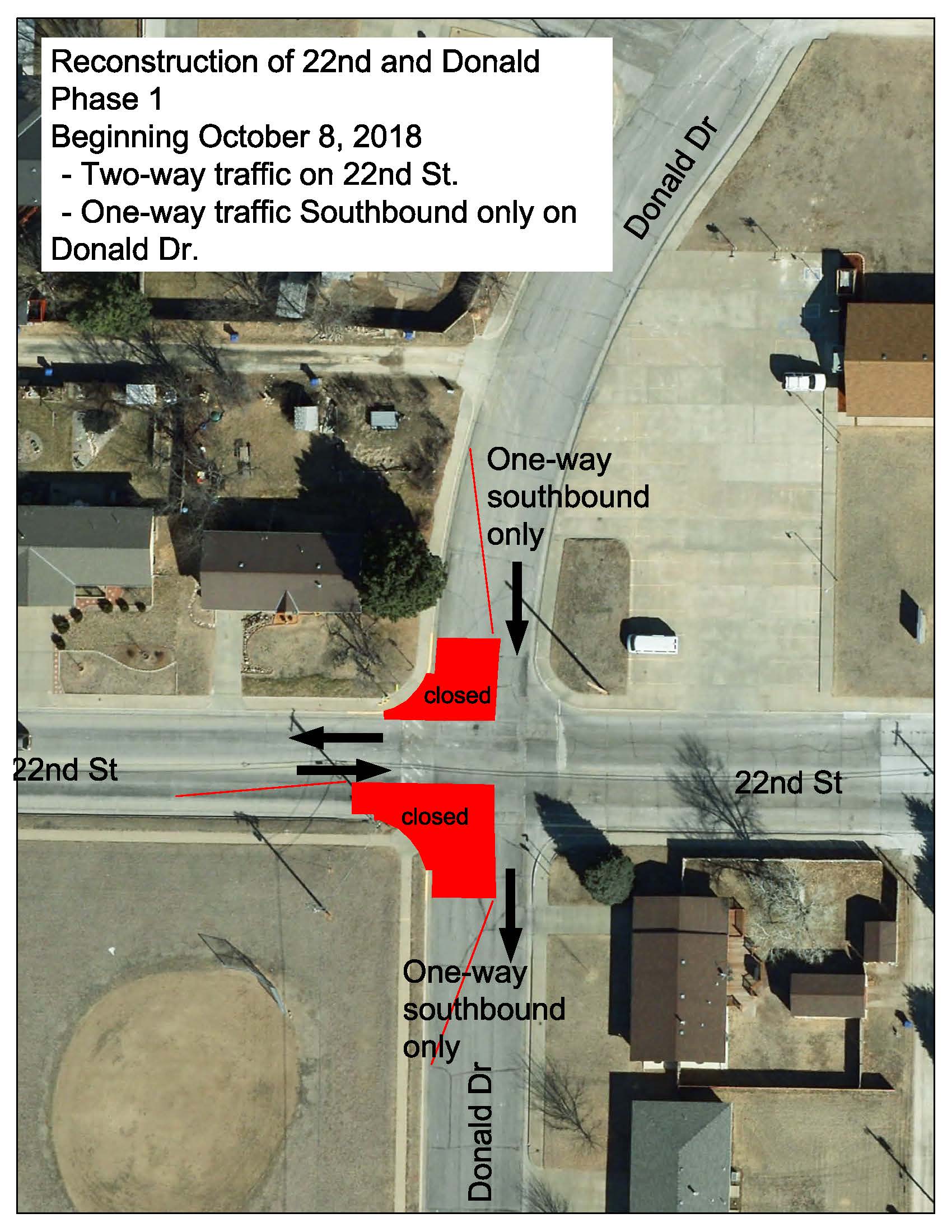 Please be advised that beginning Monday, October 8, 2018, the reconstruction of the intersection of 22nd Street and Donald Drive in Hays will begin.