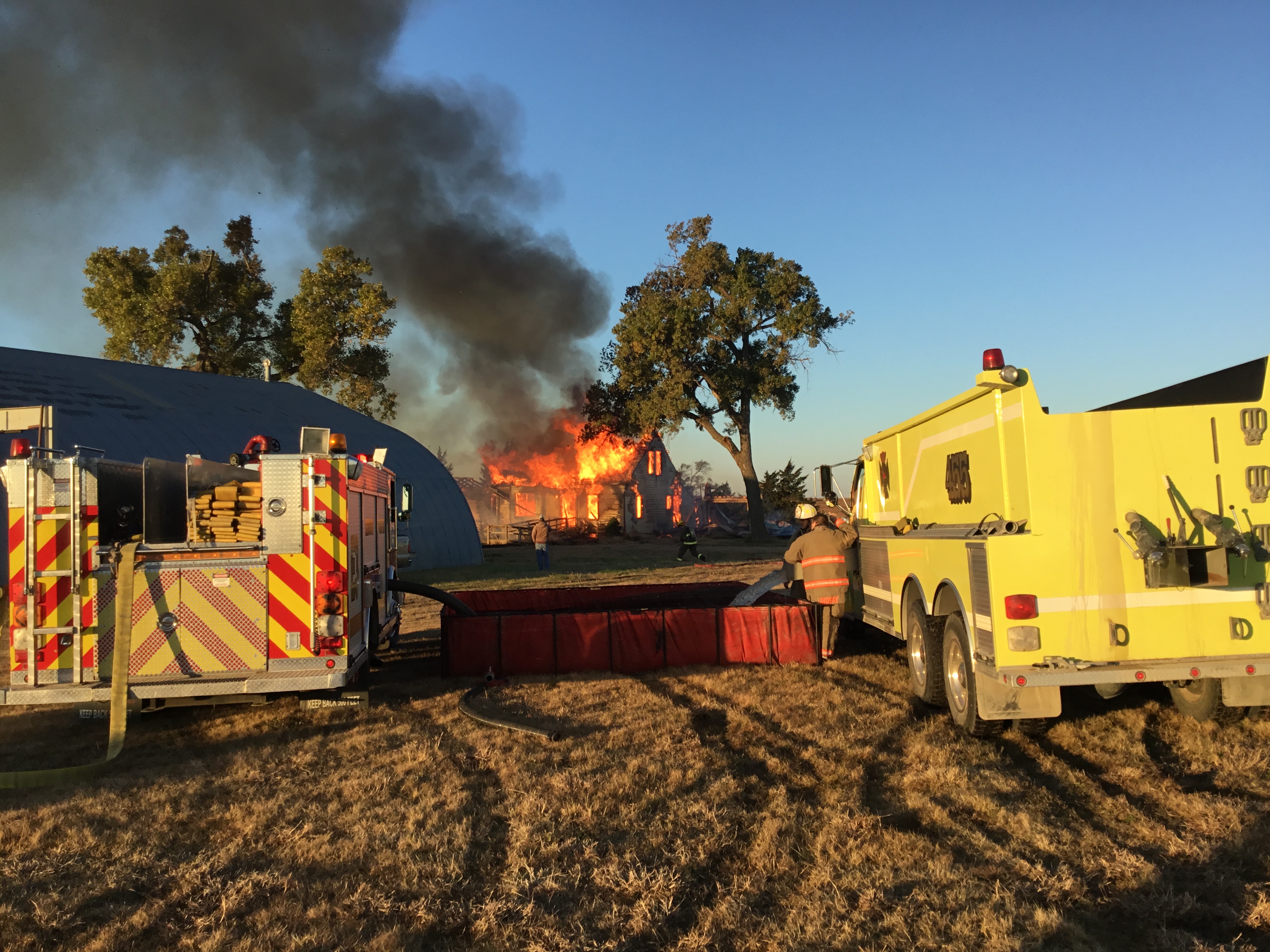 This was tested and timed for reference as there are no fire hydrants outside city limits. Water was also shuttled on-scene from a local farm pond to refill the drop-tanks.