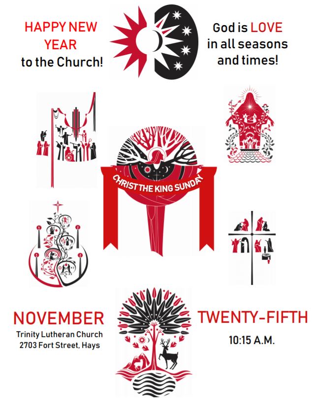 Come to Trinity Lutheran Church, 2703 Fort Street in Hays, on Sunday, November 25, at 10:15 a.m. to celebrate Christ the King Sunday. This service will recognize the rule of Jesus, acknowledge that the reign of God comes to us in unexpected ways; and proclaim that God is love for us in every seasons and time.