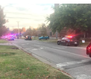The suspect is described as a 20-year-old white male. He was last seen wearing a black shirt, has an unknown red and blue tattoo under his left eye and he was carrying a black handgun.