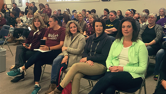 Schneweis thanked the crowd for attending the meeting. She noted the teachers’ pay is not legally bound to pay for other staff. The Hays NEA can’t legally negotiate for the other staff.
