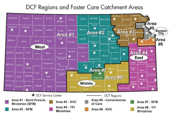 The Family Preservation grant catchment areas will continue to align with the four DCF Regions—West, Wichita, Kansas City and East. The new Family Preservation providers are: