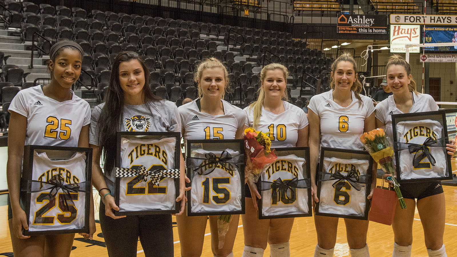 HAYS, Kan. – The Fort Hays State volleyball team grabbed the opening set against Missouri Western Saturday (Nov. 3) on Senior Day, but the Griffons rallied to take the regular season finale, 3-1. The Tigers wrap up the regular season 8-22 overall and 2-16 in MIAA play, while the Griffons move to 15-16 and 7-11 in league competition.