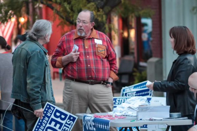 Becker was there with a group of supporters working to convince passersby to fill in his name on the Nov. 6 ballot. They handed out leaflets with instructions on how to do it and the tagline, “Don’t write him off, write him in!”