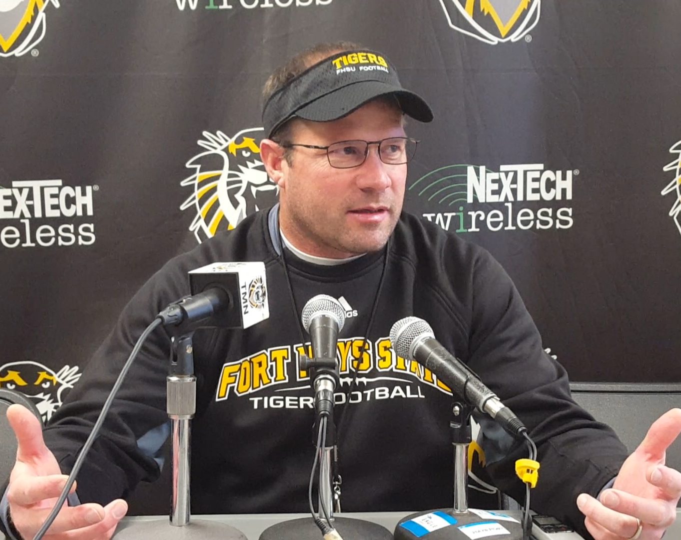 Fort Hays State head coach Chris Brown conducted his weekly press conference in advance of the Tiger’s upcoming playoff game with the University of Indianapolis Saturday afternoon in Indianapolis. Brown and select players met with the media inside Lewis Field on Tuesday, a session that can be seen by clicking on the video below.