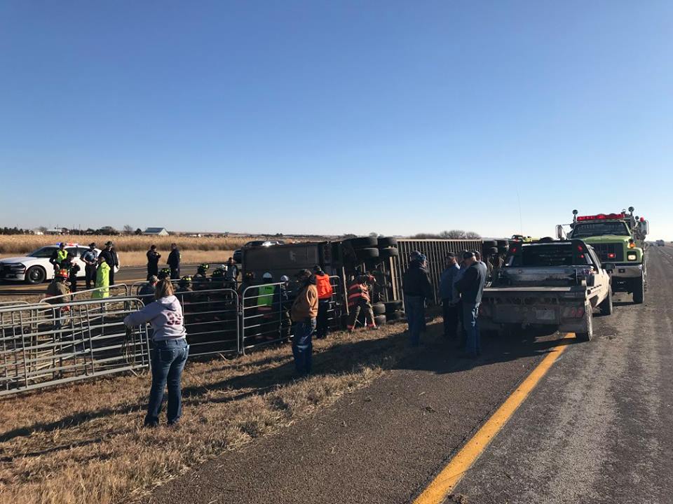 A cattle truck rolled over on Interstate 70 on Thursday, closing the road for a time.