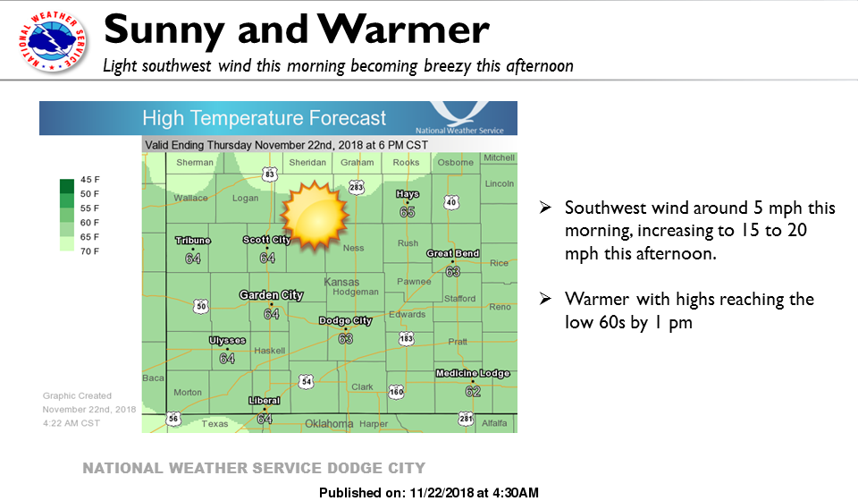 Sunny, with a high near 65. West southwest wind 7 to 12 mph becoming south 13 to 18 mph in the afternoon.