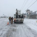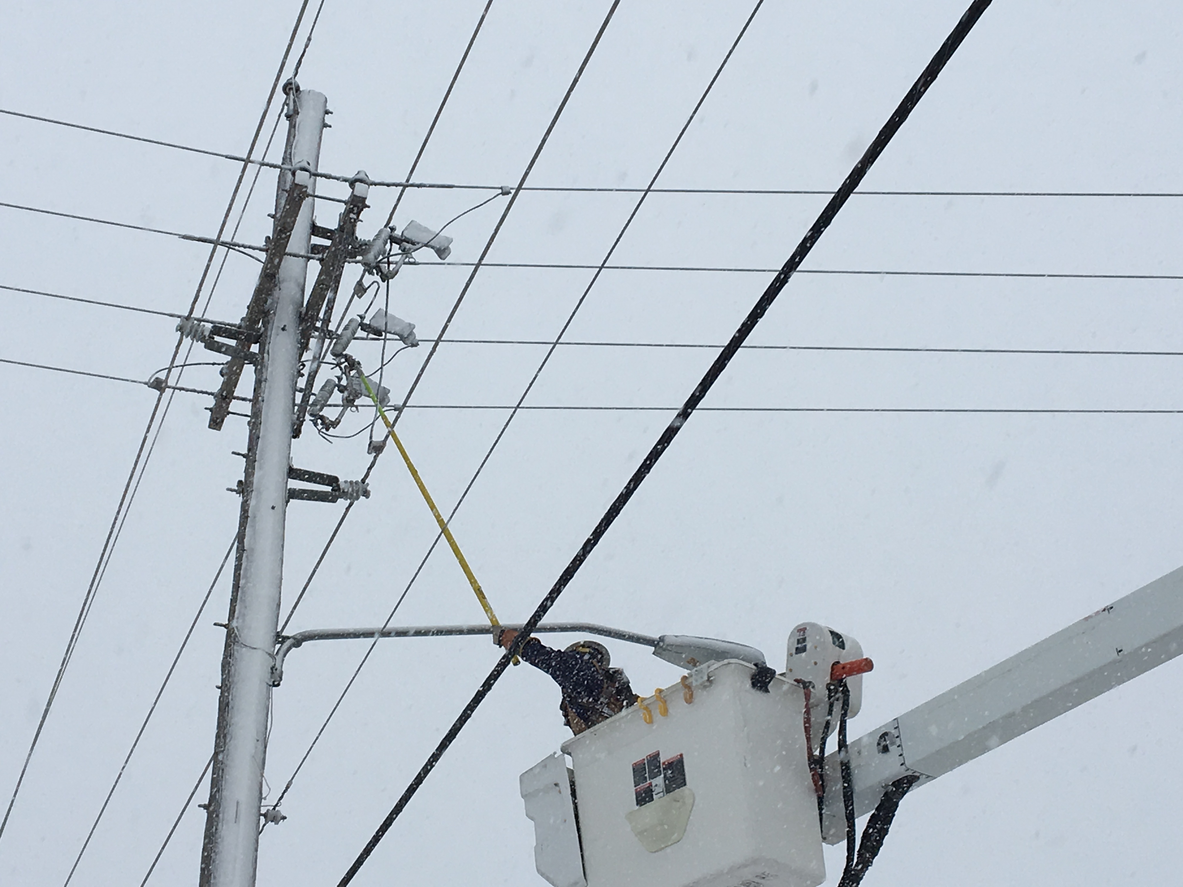 “(We’re) not finding many poles or wires down, but lots of blown fuses and open breakers. As soon as we reset, it blows again,” he said. “When (the) wind dies down we’ll make real headway.”