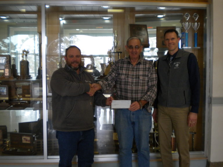 Accepting the check were Principal Chad Meitner and science teacher Randy Brull. The wind farm is the site for an annual field trip for science students and regularly provides support for Project Graduation and the ACE fundraiser in the spring.
