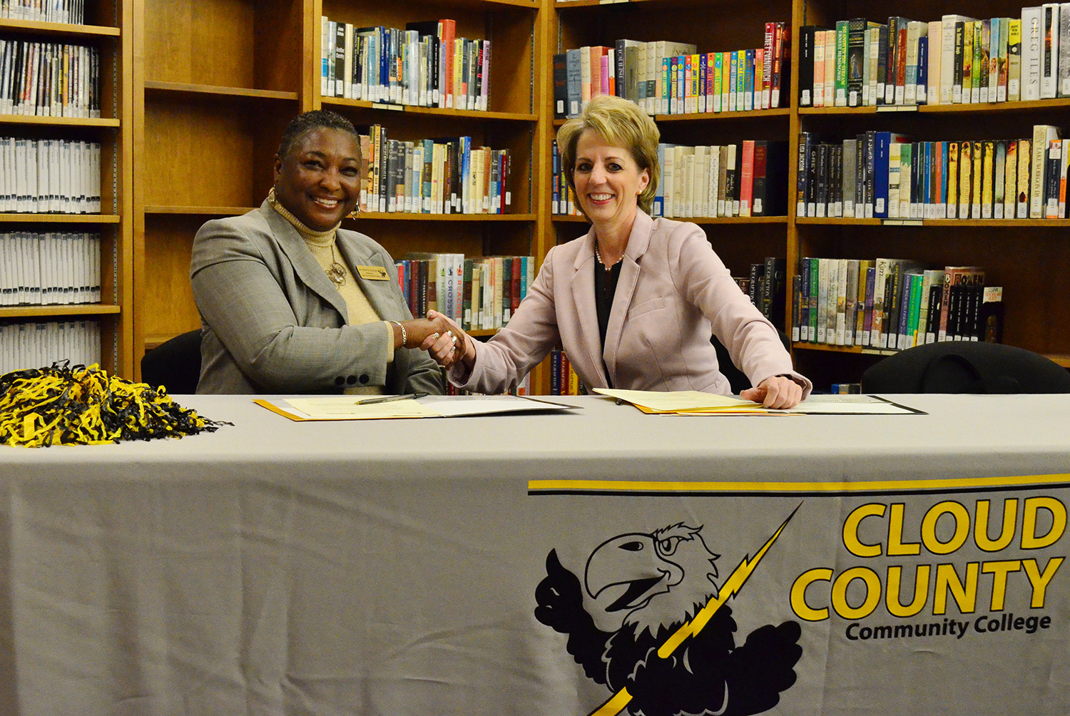 At Tuesday’s signing, FHSU President Tisa Mason said she was excited for the opportunity to continue the strong relationship with Cloud County.