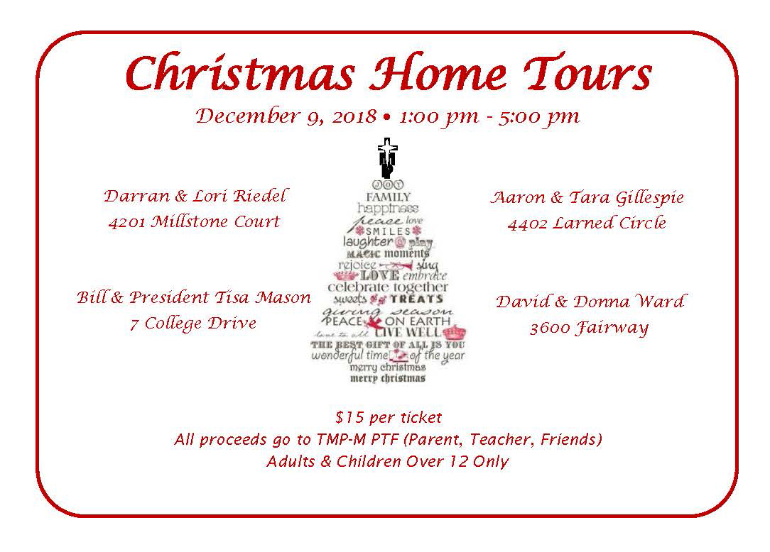 To purchase your tickets in advance by credit card, visit https://tmp-m.org/christmas-home-tours-tickets/ and your tickets will at the first house you visit.