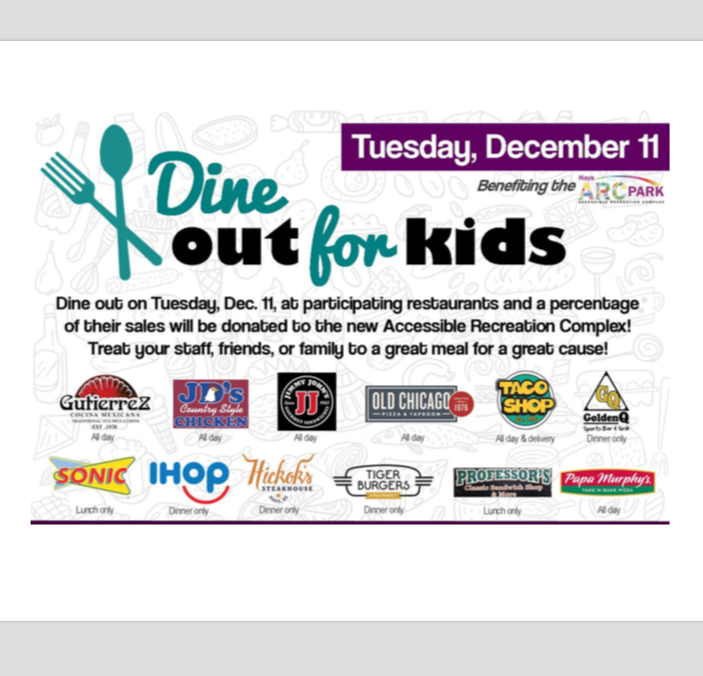 If you dine out at participating Hays restaurants on Tuesday, Dec. 11, a portion of the proceeds will go to benefit Hays ARC Park.