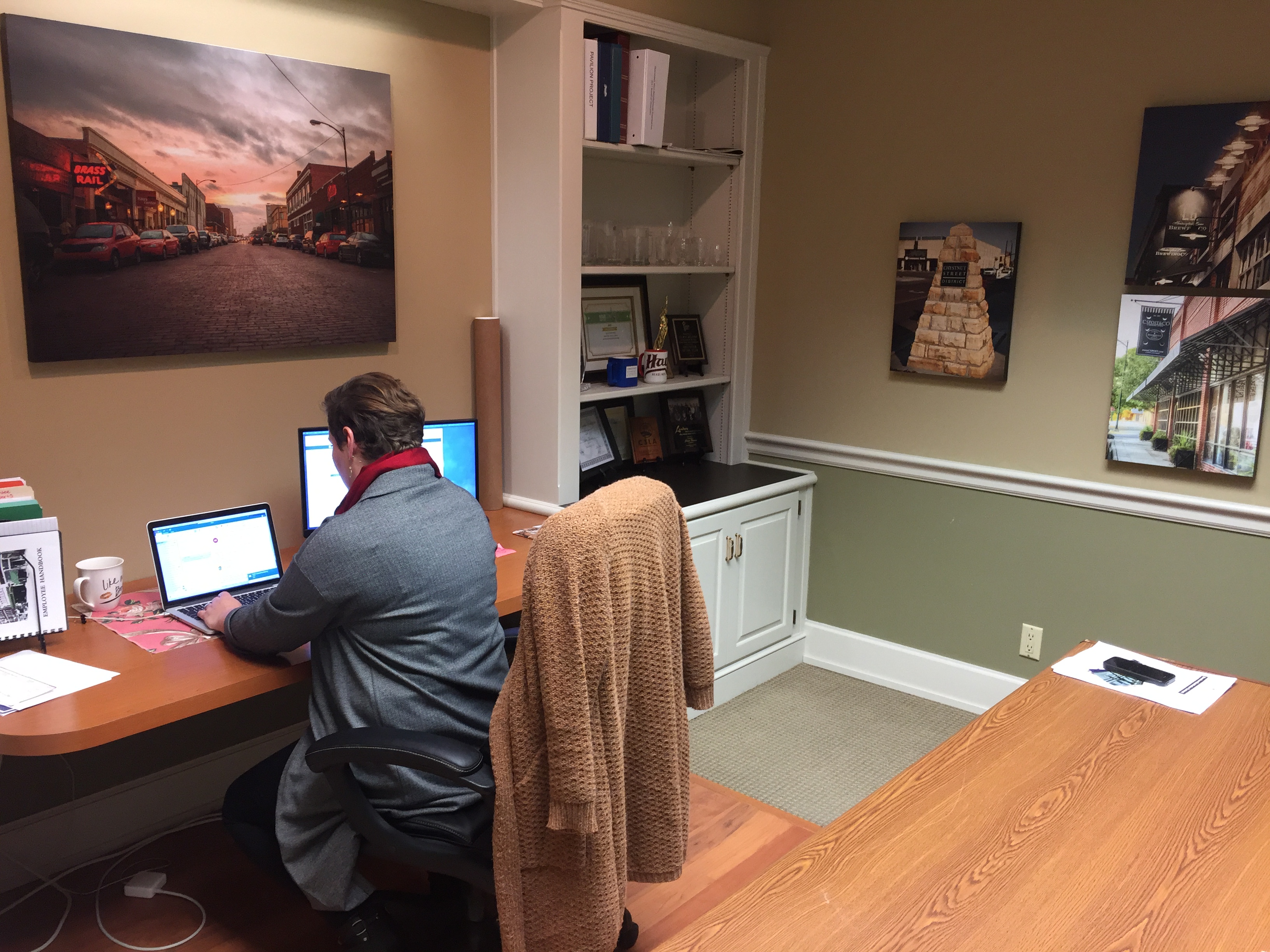 One of the building owners, Dick Werth, approached Jacobs about moving her office into the building at 1200 Main and offered a minimal rental rate. Jacobs jumped at the opportunity after being notified by the city that her space in the Hays Welcome Center, 2700 Vine, was to become the new home of the city’s IT department.