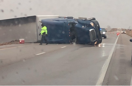 The Kansas Highway Patrol reported a 2012 Kenworth semi driven by Oritz M. Rubio, 28, Chicago, IL., was eastbound on Interstate 70 one mile east of 12th Road.