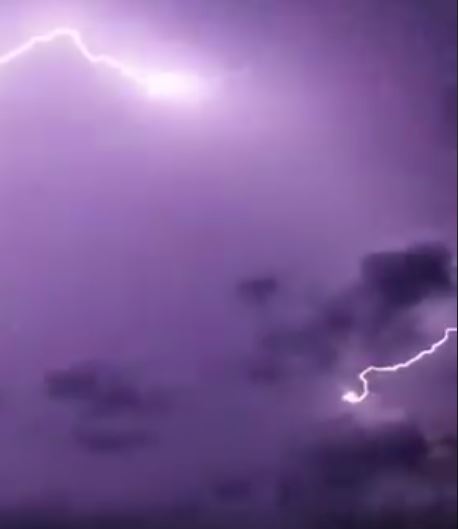 Sunday night’s thunderstorm contained many lightning strikes.