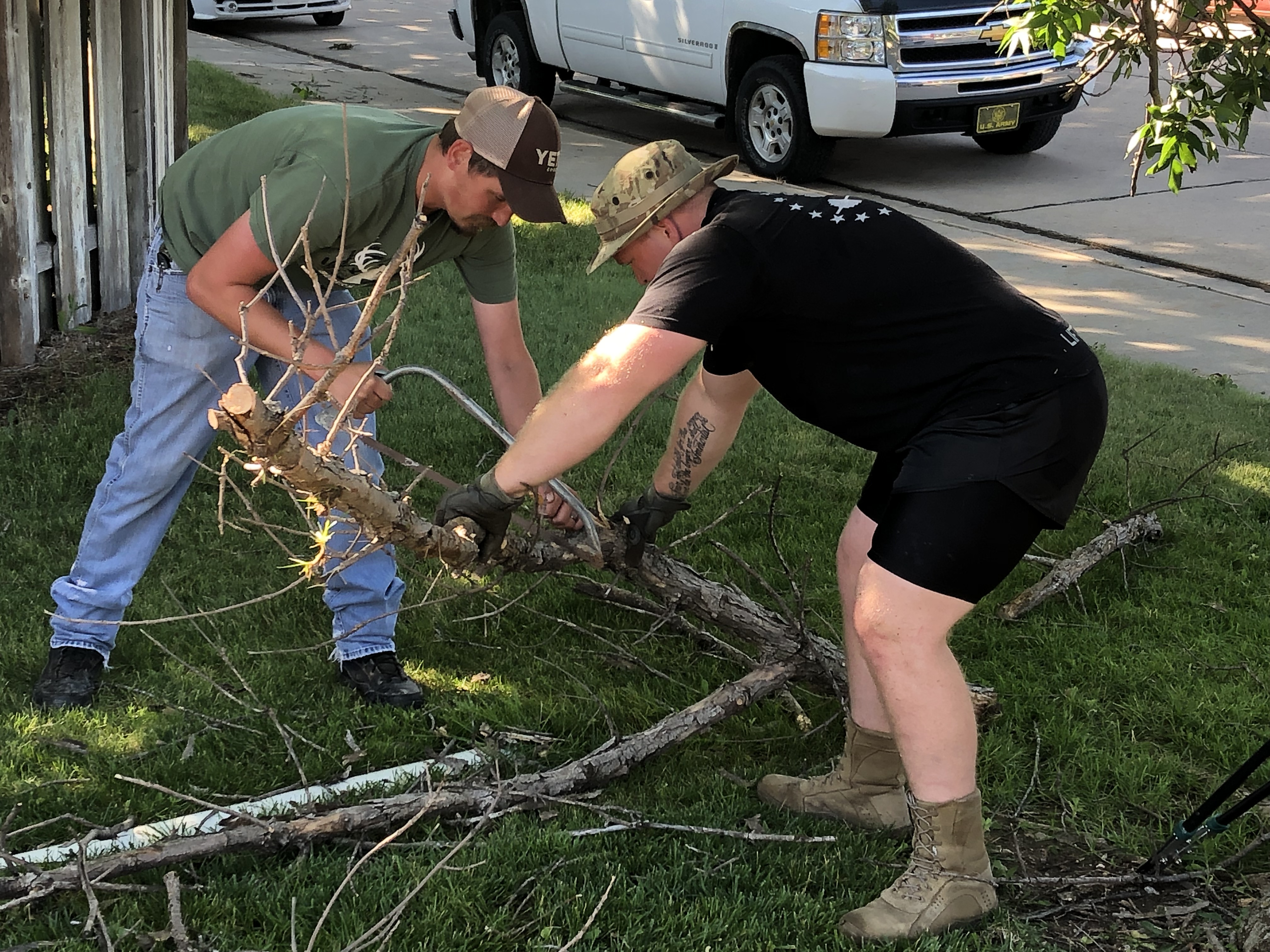 Nobody was in uniform. Instead the seven officers and two dispatchers were dressed in work clothes and boots, with yard and garden tools in hand as they clipped bushes, mowed grass, weeded, raked, and sawed dead tree limbs in Margaret’s large front and back yards.