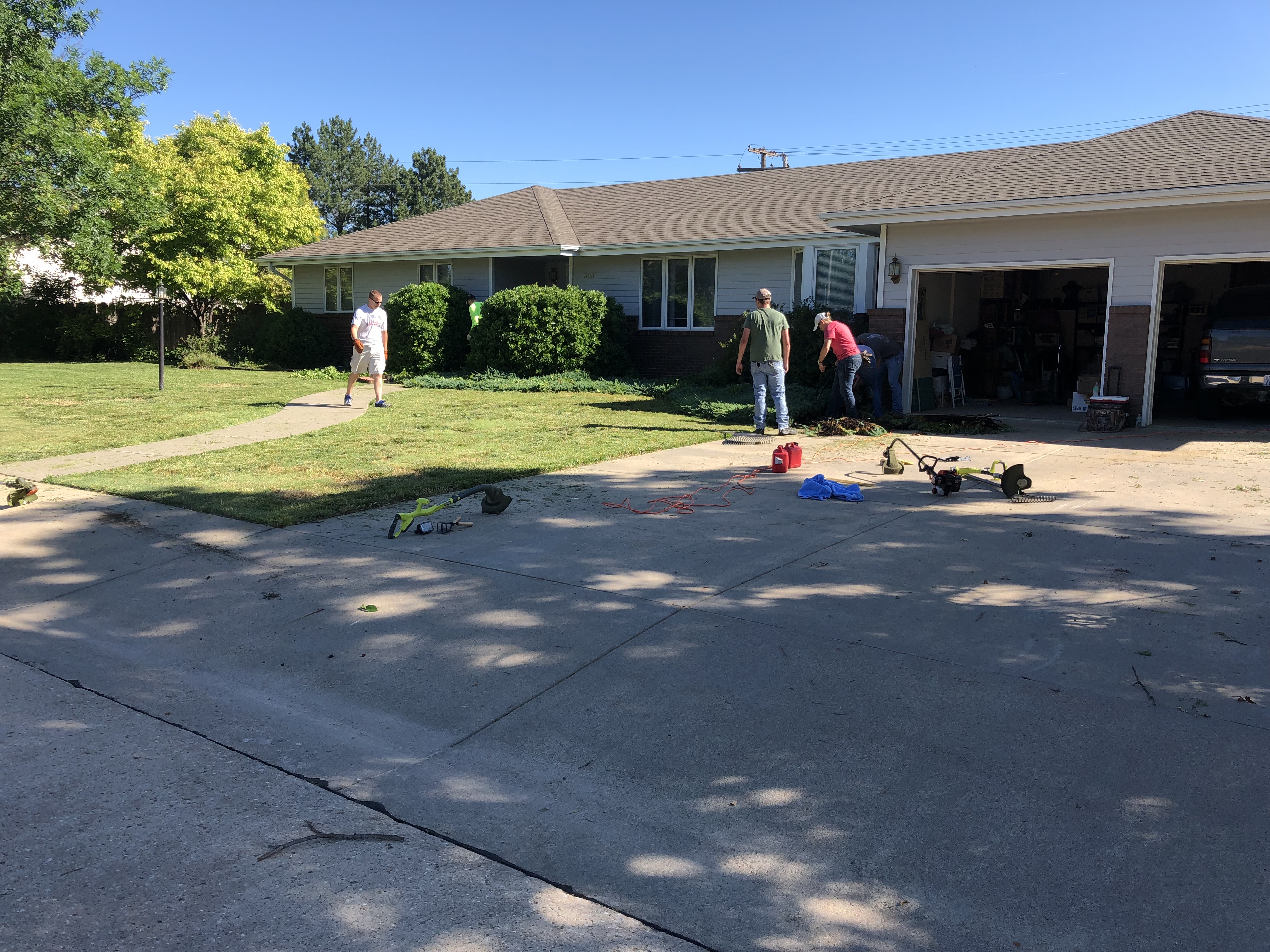 All nine of them gathered at 9 a.m. to do major lawn maintenance at the home of 92-year-old Hays resident Margaret Vine.