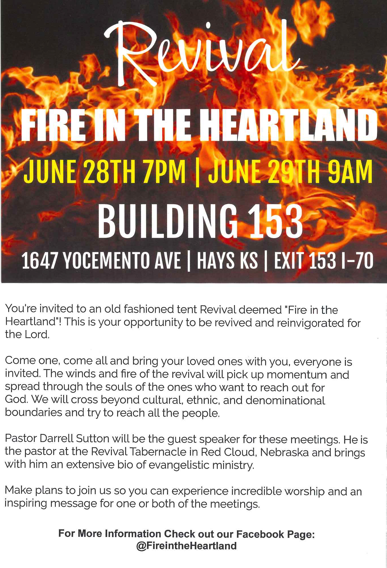 This in not a church sponsored event, rather just 10 Christians (from three different churches) in Hays wanting to bring in a great pastor and have a revival.