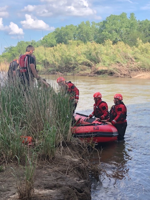 Initial contact was made by the Reno County Sheriff’s Office, however, deputies were unable to free the three from the river.