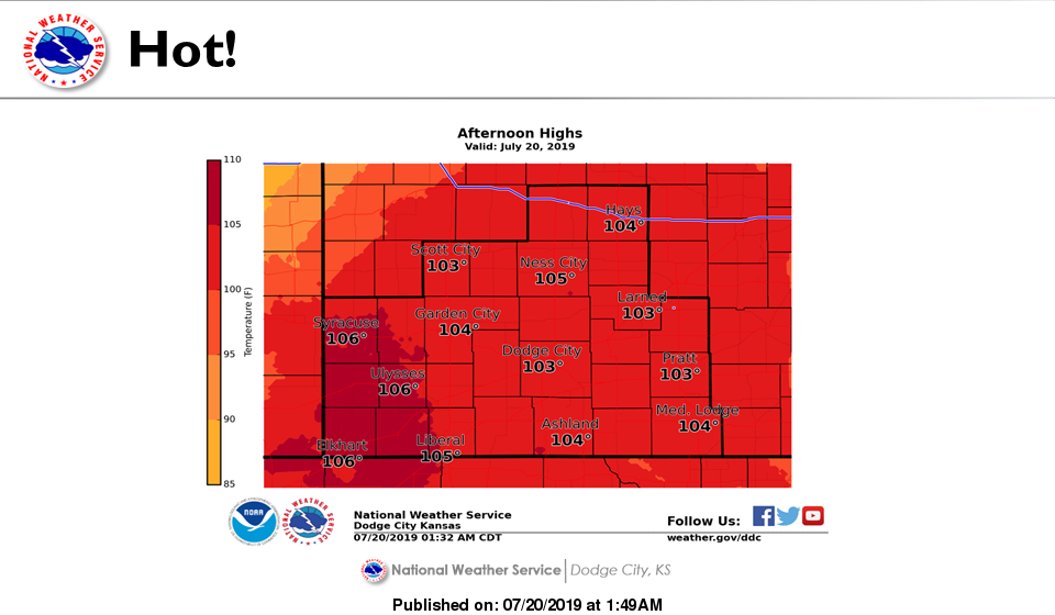 Sunny and hot, with a high near 104. Heat index values as high as 109. South wind 11 to 17 mph.