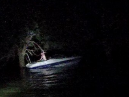 The warden, accompanied by two Jefferson County Sheriff’s deputies, located a man, woman and child in the boat tethered to a submerged tree.