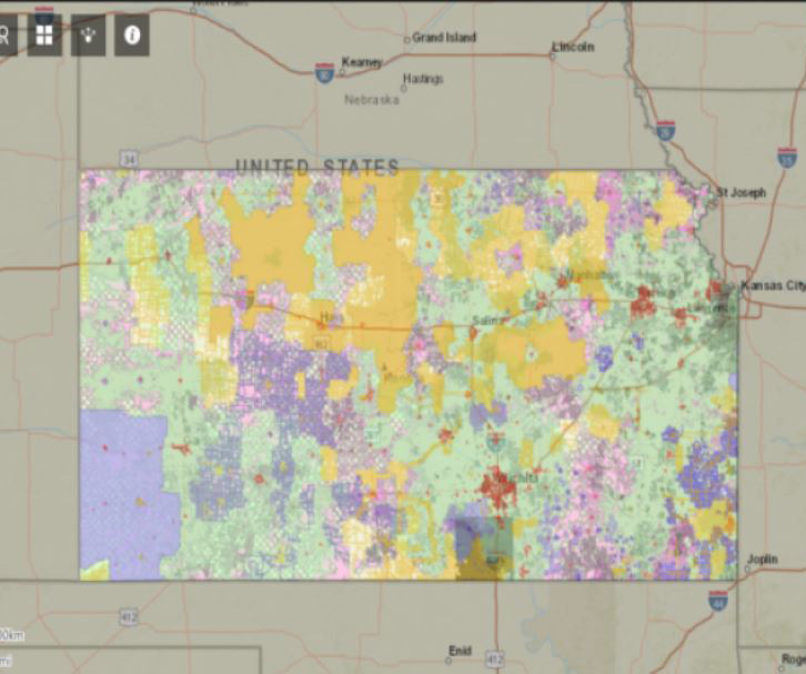 Kansas is bathed in shades of blue that stretch north to south, east to west. That’s not a reference to politics: It’s what the state looks like on the Federal Communications Commission’s Fixed Broadband Deployment map.