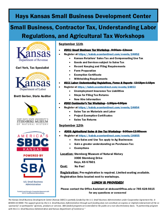 Small Business Development Center schedules tax workshops