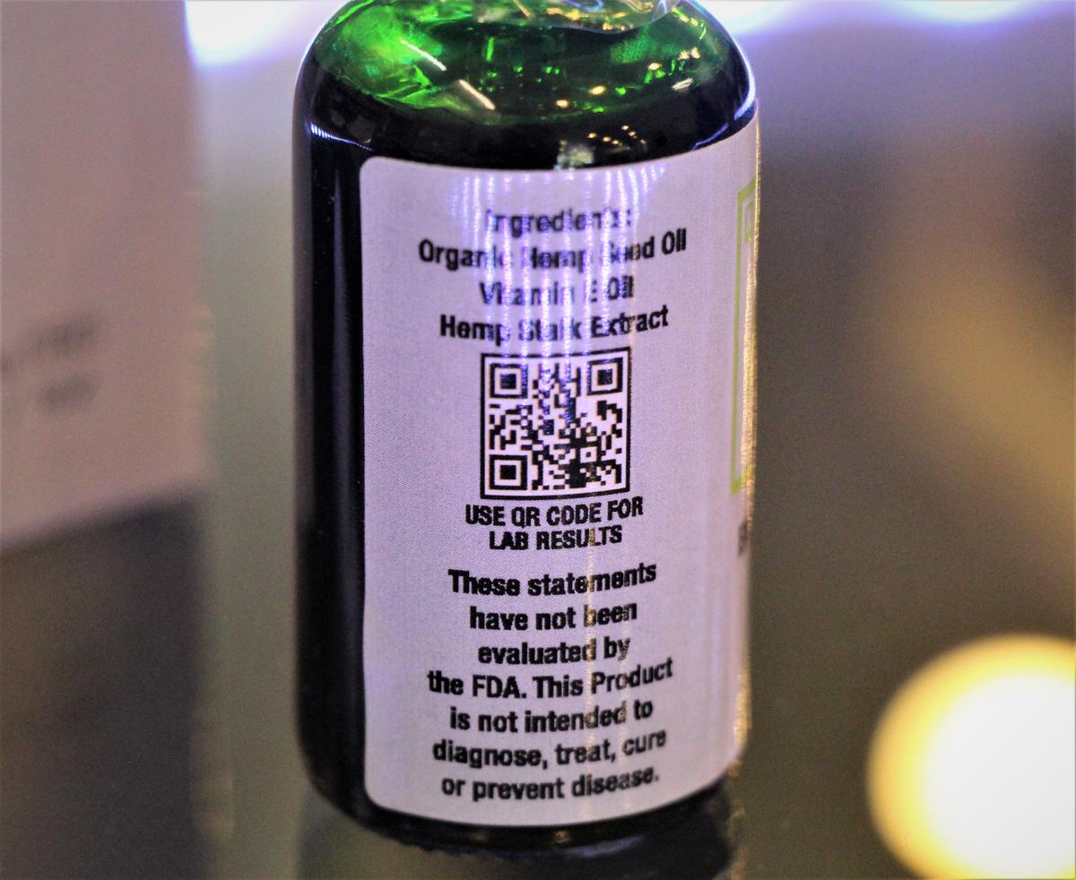 Consumers can ask to see lab results when buying CBD products. Quiet Trees uses QR codes to let customers view chemical information with smartphones. (Photo by Celia LLopis/Jepsen/Kansas News Service)