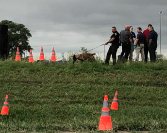 On August 16, at 9:19 a.m., a bicyclist was riding on the flood control levee located in the area of Crawford and Centennial in Salina. The bicyclist observed what they believed to be a person lying in the grassy area south and west of this intersection.