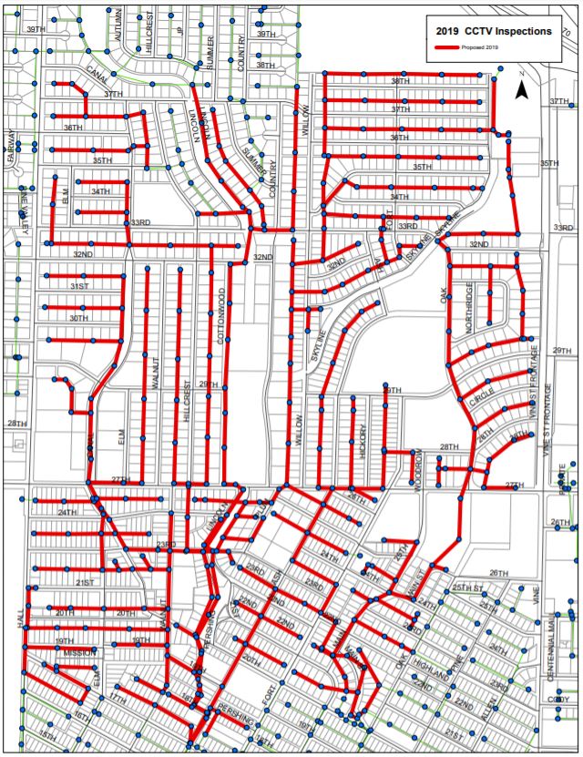 The city of Hays Water Resources Department has contracted with Pro-Pipe to conduct sewer line cleaning and inspections at the locations shown on the map below.